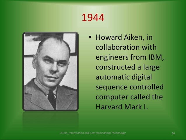 Dr. Howar Aiken's Mark :- सन 1940 में विद्युत् यांत्रिक कम्प्यूटिंग शिखर पर पहुँच चुकी थी IBM के चार शीर्ष इंजीनियर व डा हावर्ड आइकन ने सन 1944 में एक मशीन विकसित किया यह विश्व का सबसे पहला विधुत यांत्रिक कंप्यूटर था